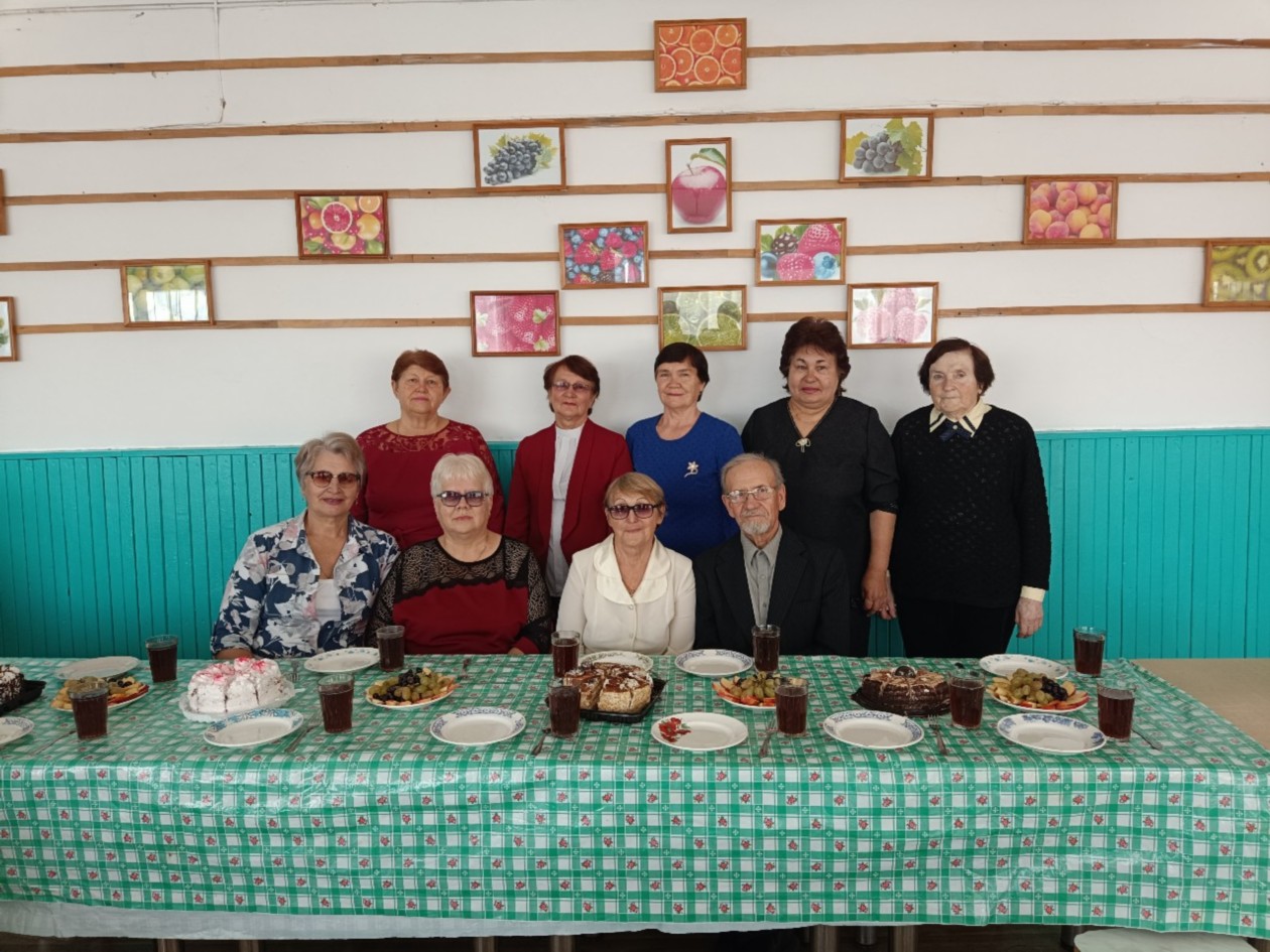 Педагоги-ветераны за прздничным столом на праздновании дня Учителя. |